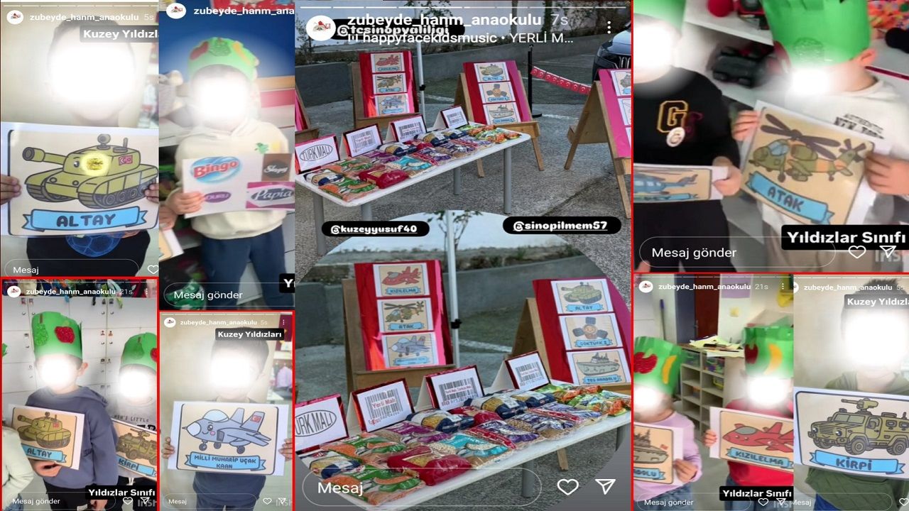 Yerli malı haftası nedeni ile çeşitli okullarda oluşan görüntüler tepki topladı. Zübeyde Hanım Ana okulunda yapılan etkinlikte ' yerli ve milli' denilerek 3-5 yaş grubu çocukların ellerine savaş araç ve gereçlerinin fotoğraflarının verilmesine tepki gösteren Eğitim-İş Sinop Şube Başkanı Celal Şahbenderoğlu Haber Kolektif’e konuştu.