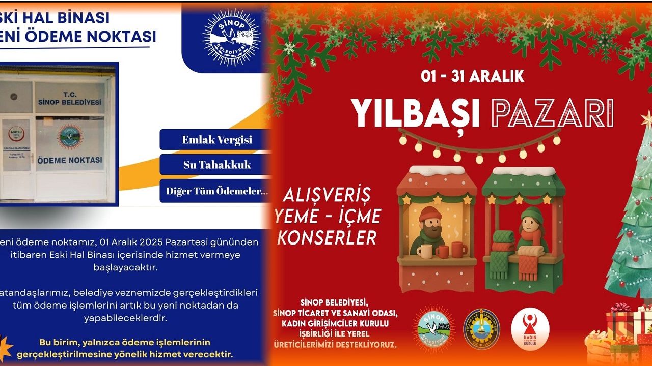 Belediyeden hizmet atağı. Belediye Başkanlığı ödeme noktasını halkın ayağına taşırken Sinop tarihinde bir ilk olarak da yılbaşı çarşısı oluşturdu.